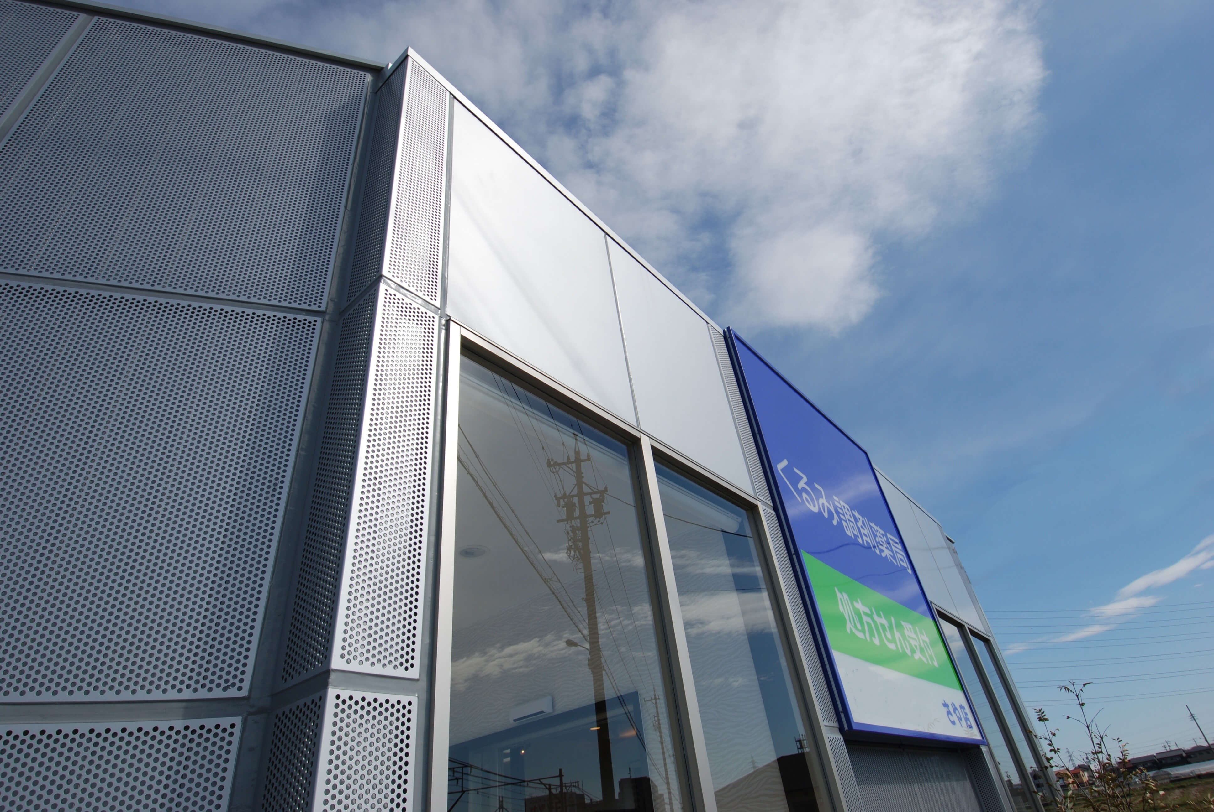 アルミの穴あきのパンチングで包まれ、非常にクールでエレガントな外観からは想像しえないほど、やさしい思いが盛り込まれている店舗。待合室からでも屋外の美しい花壇を望めるように、また、店内にいても店外にいても小さい子供の様子を親御さんが見ていられるように花壇側に大きな窓を設置したり、スタッフ向けの休憩室を和室にしたり・・・訪れる人々にとっても、スタッフにとってもくつろげる空間となっています。