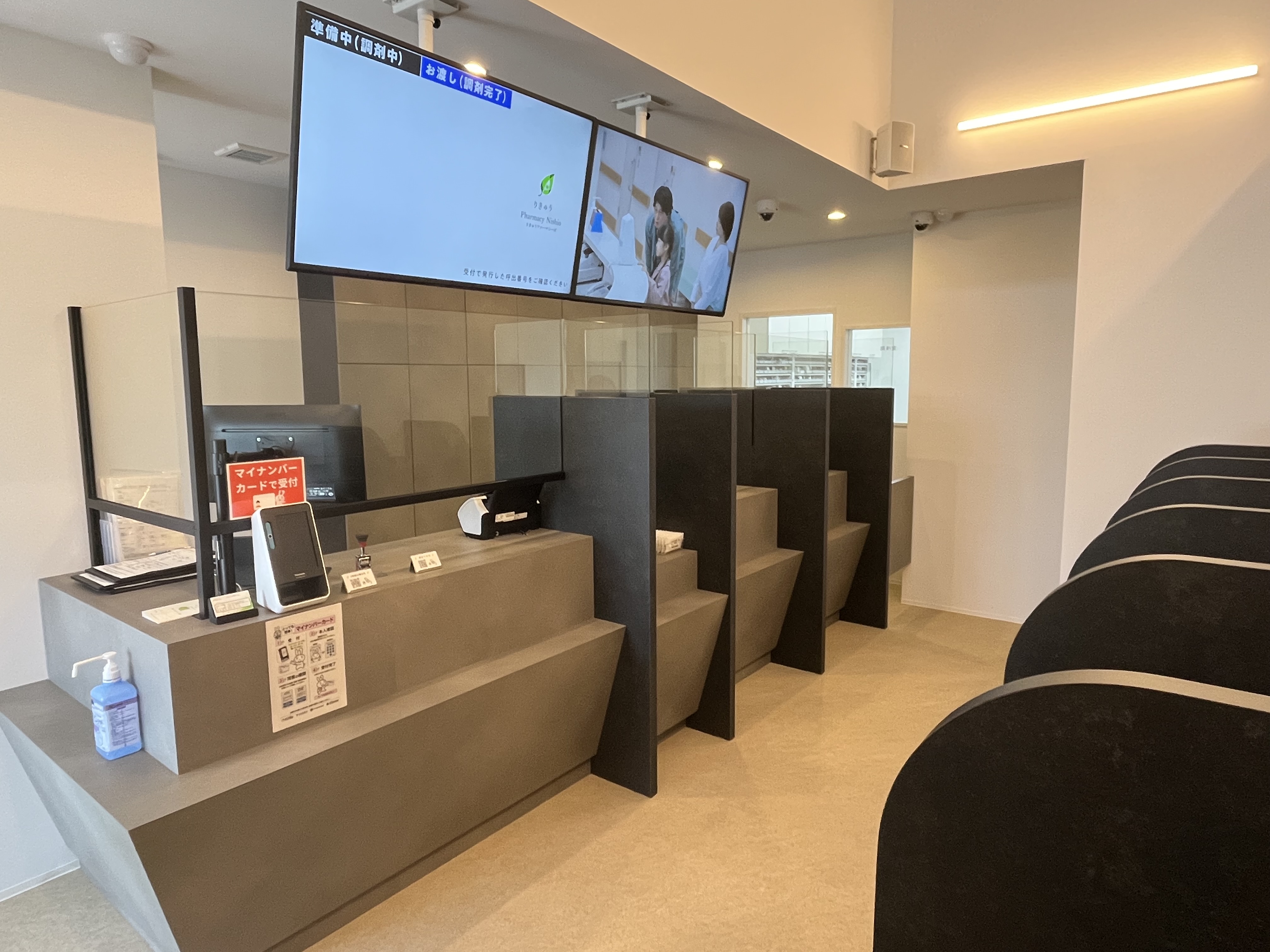 また、すべての投薬口にガラス張りの個別パーティション、個別に仕切られた待合室、空調換気など感染症対策も万全です。